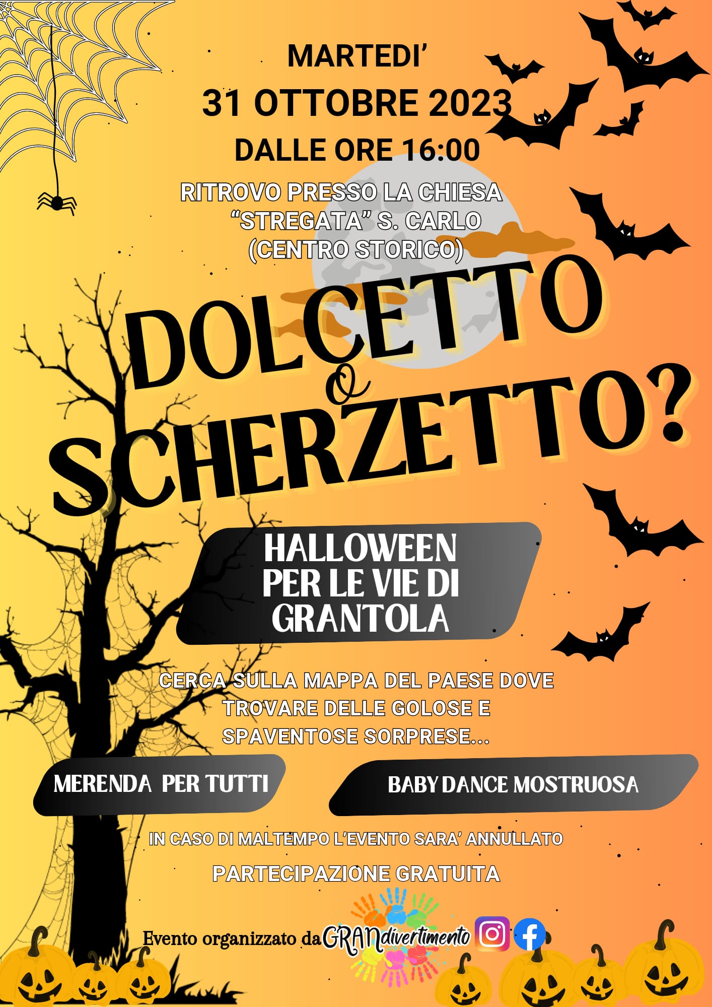 Halloween Dolcetto o scherzetto? Divertitevi, in sicurezza, per le strade di Grantola Tante attività divertenti organizzate dal gruppo GRANdivertimento. Partecipazione gratuita + Aggiungi a Google Calendar + iCal / Outlook export CercaCerca Amici della San Carlo Concerti Concorsi EVENTI Feste Galleria GRANDivertimento In evidenza Pro Loco